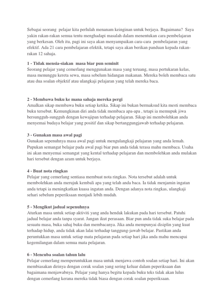 Karangan Tentang Cara Cara Menjadi Pelajar Cemerlang Pdf